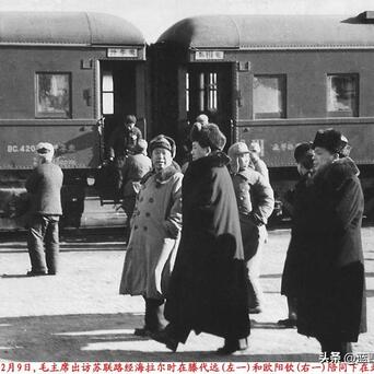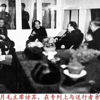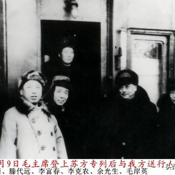 2、毛主席登上访苏专列,与我方送行人员合影。